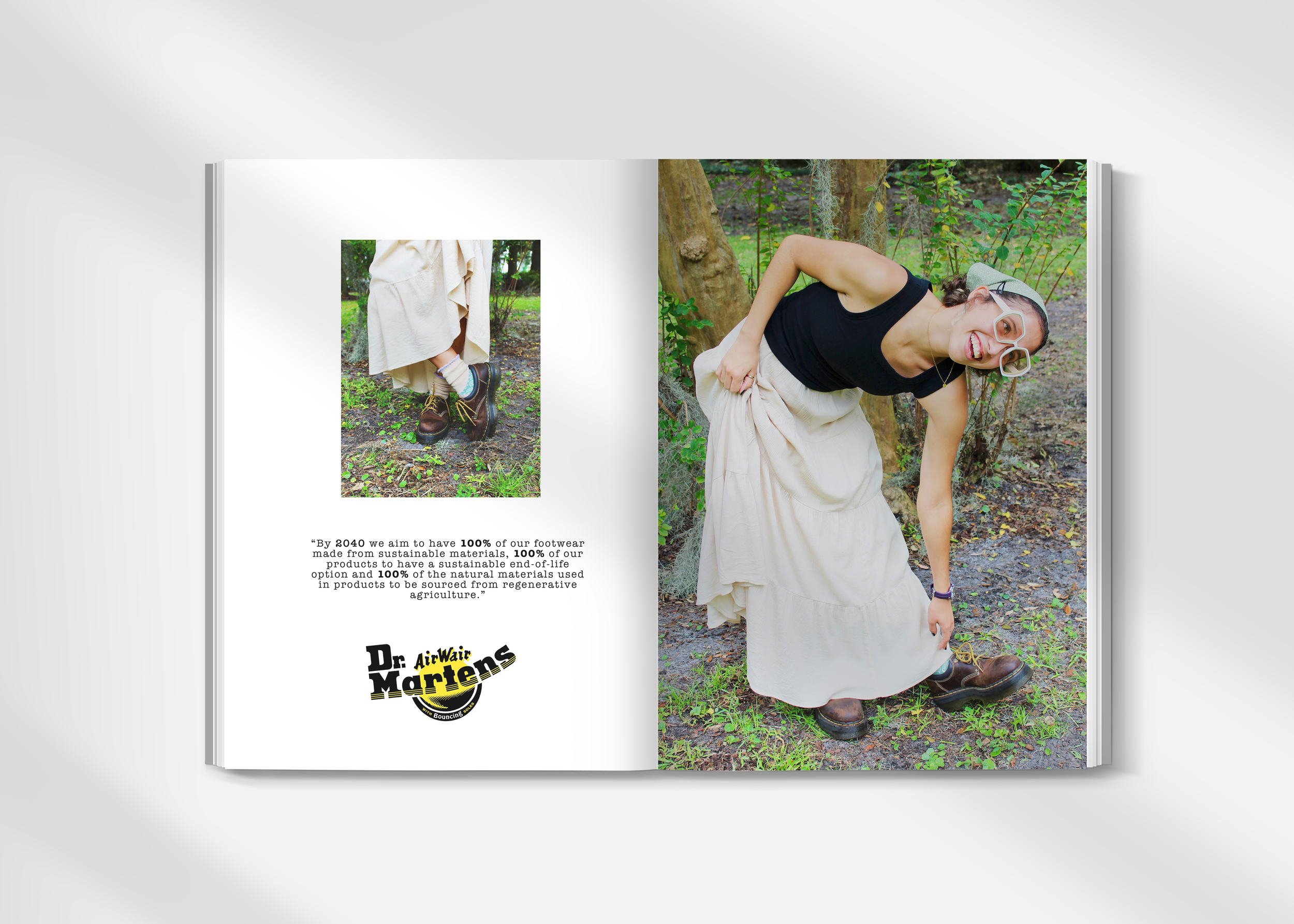 after researching the history of the brand and what is to be ahead, this campaign is inspired by their dedication and movement to going sustainable. by 2040, dr. martens aims to have 100% of their footwear made from sustainable materials, with 100% of their products to have a sustainable end-of-life option as well as 100% of the natural materials to be sourced from regenerative agriculture.