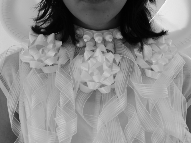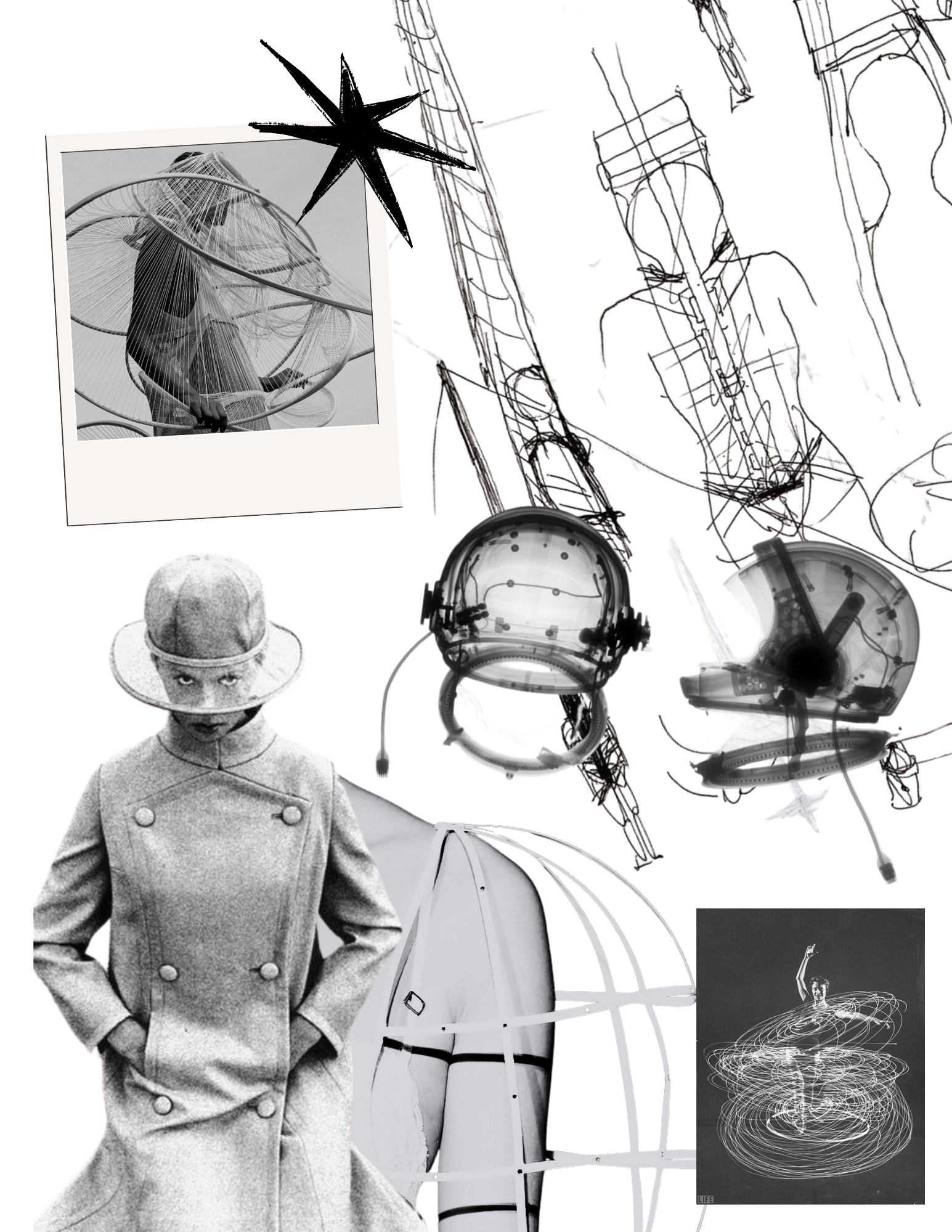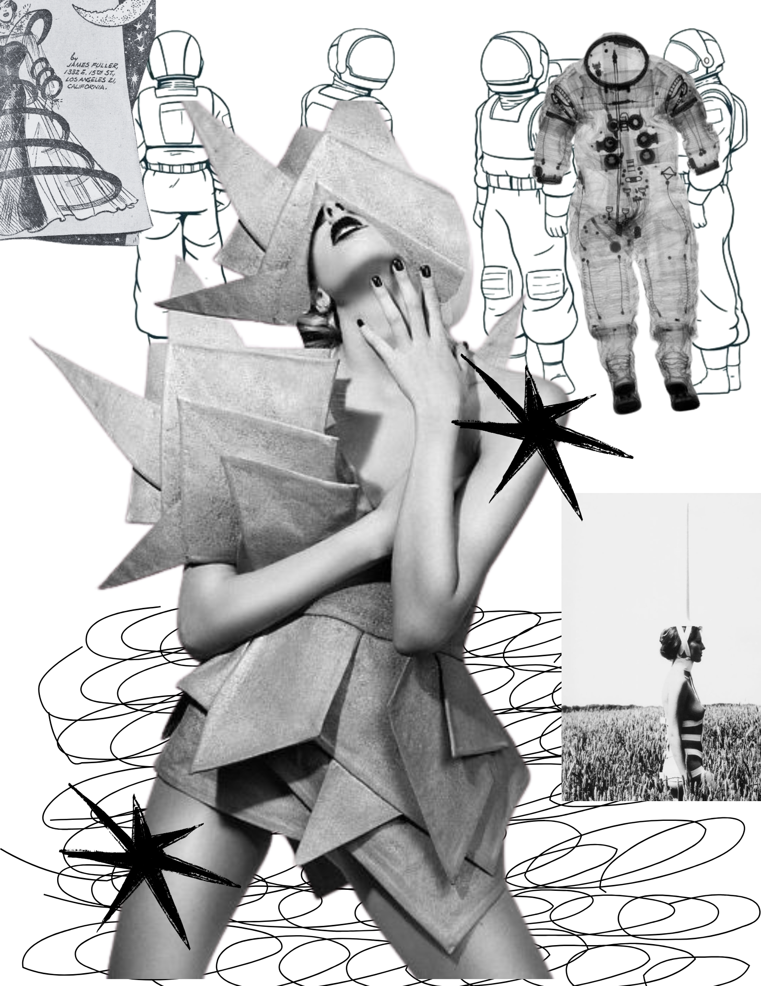 an upcycled secondhand garment redesigned with only white elements and following our individual theme. i reimagined an astronaut space jacket to follow my theme of retro-futurism. back to the fun!